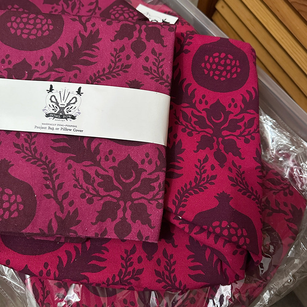 Color Note: Due to the hand-dyed and hand-printed nature of this fabric, the colors are slightly different than the colors of the pillow project bag which was printed by machine (see last photo). This version of the fabric design is more saturated with more contrast between colors.