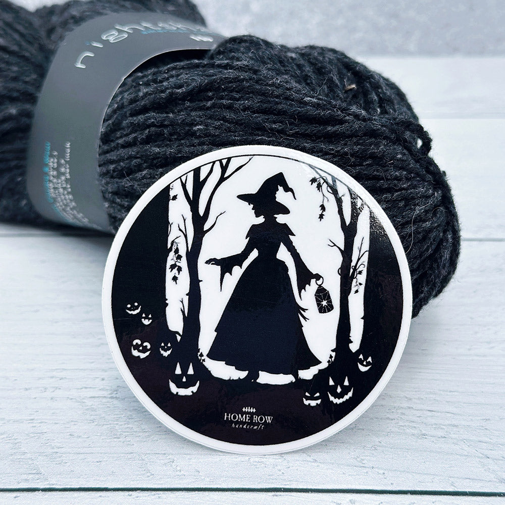 3" round vinyl sticker featuring Rochelle's 'Wandering Witch' silhouette-style artwork.